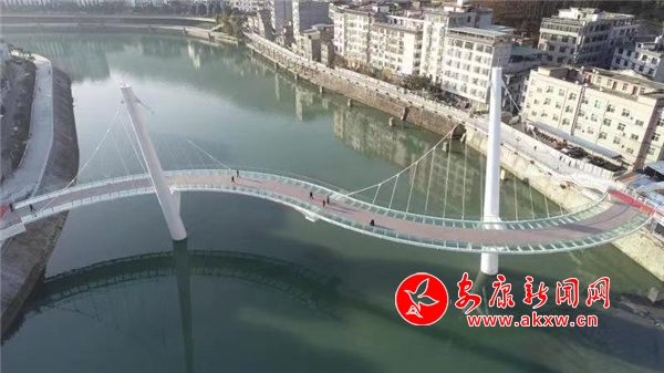 无人机拍摄的刚建成的岚皋县城岚河人行桥。陈延安/摄