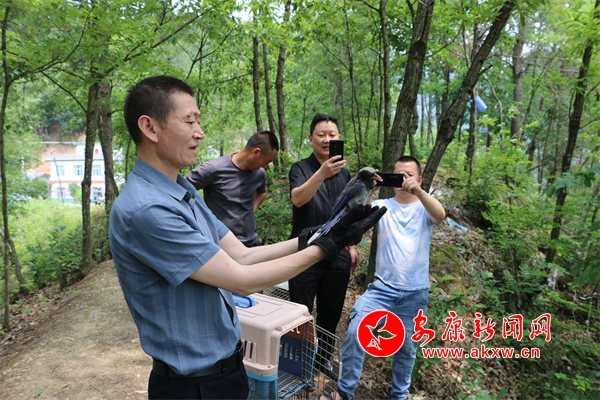 本网讯(通讯员 苏鸿浩 赵滨源 刘秋洪)6月12日,岚皋县林业局野生动植物保护管理站工作人员将群众发现的两只国家二级保护动物灰林鸮、斑头鸺鹠,一只三有保护动物红嘴蓝鹊和一只省重点保护动物果子狸放归山林。
