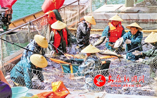 进入7月以来,岚皋县岚翠湖生态渔业公司大水面生态养殖迎来了新一个捕捞季,渔民们拉网捕鱼,一派水绿山青、渔跃人欢的丰收景象。