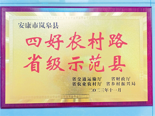 近日,陕西省交通运输厅、财政厅、农业农村厅、乡村振兴局联合下发《关于2023年“四好农村路”省级示范市、示范县命名的通报》,岚皋被命名为“四好农村路”省级示范县,也是2023年度安康市唯一获此殊荣的县区。