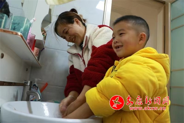 11月26日,郑和香在给儿子洗手。陈延安/摄