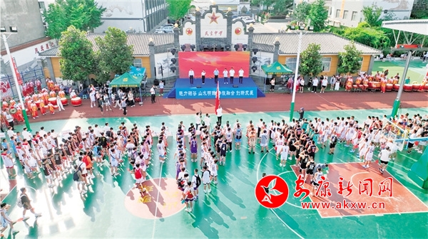 开幕式在气势恢宏的大道锣鼓《丰收锣鼓曲》中拉开帷幕,舞蹈《回到山沟沟》、歌曲《全胜寨》、啦啦操《篮球宝贝》、“灌篮神曲”《直到世界尽头》等节目相继上演,台下掌声、欢呼声不断。