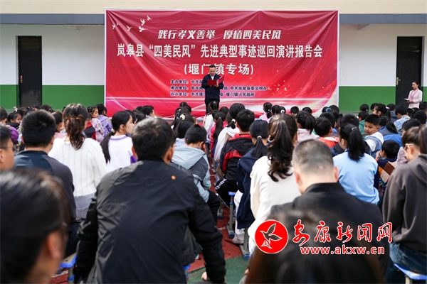 本网讯(通讯员 陈员森)10月29日,岚皋县“四美民风”宣讲团走进堰门镇开展先进典型事迹巡回宣讲活动。全体镇干部、堰门中心小学学生及群众共计150余人参加活动。VYR安康新闻网