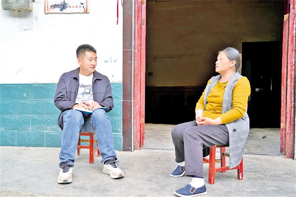 彭方睿入户进行政策宣传,并了解兴坪村农户收入情况