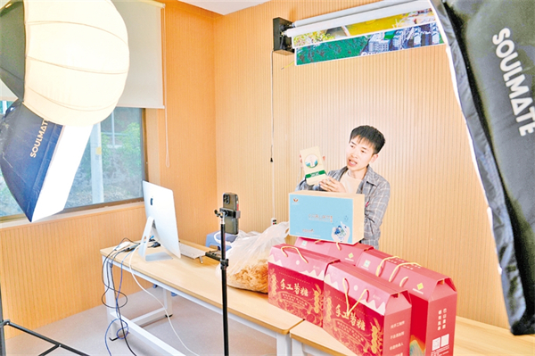 站在石门镇电商直播基地内,灯光将王帮乐的影子拉得老长。他正调试着新入手的直播设备,准备把即将启用的电商中心搬进镜头。发货的提示音在这时响起,恰似这个年轻“新农人”正在书写的电商助农新篇章。
