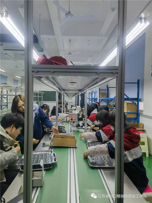 校企合作是新形势下企业发展进步的内在要求,也是产业发展实现双赢的战略举措。为了充分发挥学校教育及人才优势,与此同时企业也能够更好地发挥自身资源及市场优势,联络组还统筹“组团帮扶”教育资源和苏陕协作龙头企业市场资源。一方面在学校建设实训教室,直接将生产线搬入课堂。另一方面通过在生产线上的“职业体验”,让学生沉浸式感受和参与企业管理、企业文化和生产过程,培养职业素养。