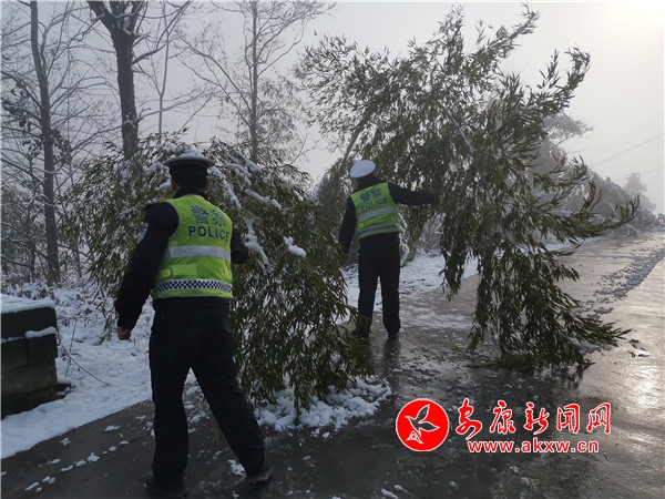 岚皋交警积极应对第一场雪