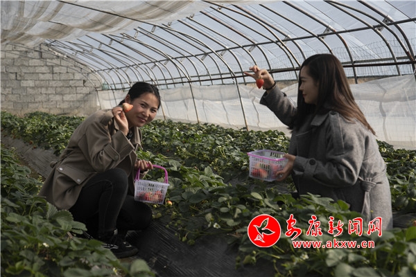 岚皋:农业采摘园大棚草莓成熟迎游客