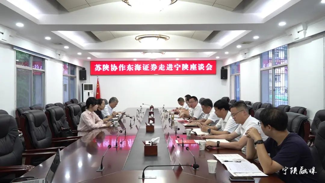 8月12日, 苏陕协作宁陕联络组组长于忠俊与东海证券公益部负责人蒋岚一行就东海证券走进宁陕进行交流座谈。
