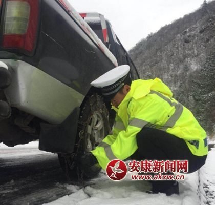 风雪中的宁陕交警