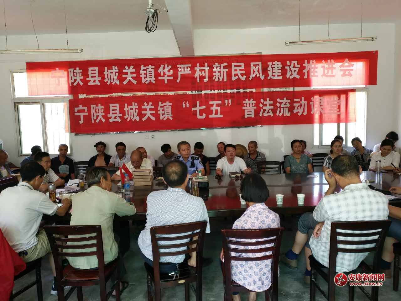 8月2日至8月3日,宁陕县城关镇人民政府先后在城南、城北两个社区及华严村、旱坝村等四个村召开新民风建设推进会。利用这一契机,城关派出所民警现场向参会群众进行“平安创建”、“两率两度”知识宣讲,同时就派出所近期工作、户籍制度改革、如何规范报警、报警的范围,案件办理程序、防盗防诈骗、打击传销等相关法律法规知识进行了详细的宣传解答,使与会群众对常用法律法规、平安建设的工作内容有了更深的了解,受到与会群众一致好评。
