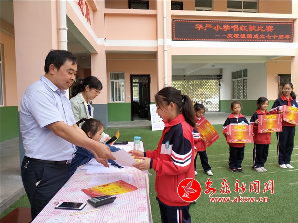 唱红色歌曲,抒爱国之情。《歌唱祖国》、《今天是你的生日》、《我爱北京天安门》......一首首嘹亮的歌声唱着华严小学全体师生对祖国的热爱,进一步增进了该校师生对党、对社会主义祖国的朴素情感。