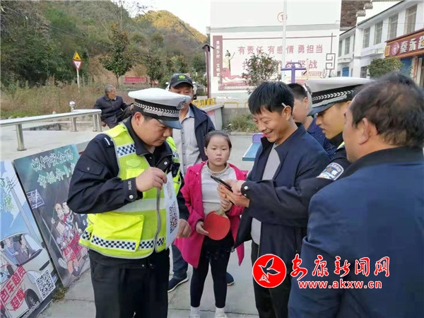 本网讯(通讯员 康忠静)10月23日,宁陕县公安局交警大队广货街中队深入辖区企业、社区进行普法活动,开展“三率两度”及冬季道路交通安全宣传工作。