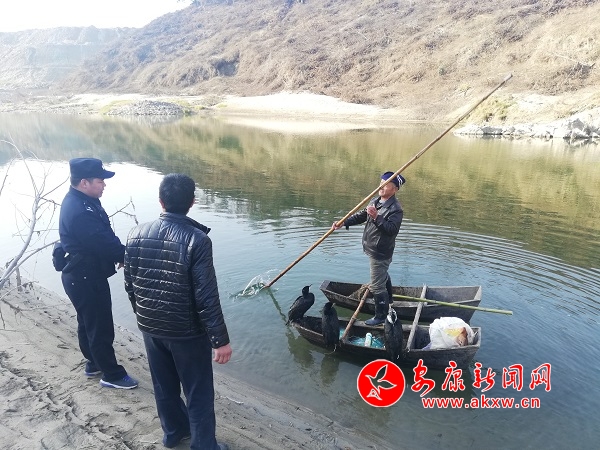12月27日14时许,宁陕县公安局筒车湾派出所接到群众举报:在宁陕县梅子镇安坪村汶水河道内有人用鱼鹰和渔网捕鱼。接警后,民警迅速联合宁陕县水利执法部门前往现场查处,现场查获鱼鹰3只,渔网6副、活鱼20余斤,经询问,张某、黄某2人对非法捕鱼供认不讳,并称时至年关,自己想通过捕鱼搞点“年货”。民警调查取证结束后,按照相关程序将案件移交至宁陕县水利执法部门,由水利执法部门对上述违法行为处以罚款500元的行政处罚,对捕鱼工具予以收缴,所捕获的活鱼进行放生。