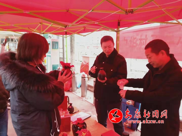 本网讯 (通讯员 黄倩 甄财鑫)年关将至,宁陕街头张灯结彩,到处洋溢着春节的气息,年货一条街的第一个摊位格外的热闹,“大家都来看一看,瞧一瞧,中华村脱贫园区产品纯高粱白酒‘子午小烧’,土法酿制、口感甘甜,可以免费品尝哟。”宁陕县民政局派驻中华村“第一书记”程建热情的推销着,身边挤满了前来购买的人群。