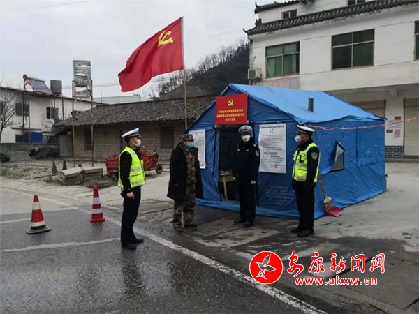 各个卡点,党旗飞扬。“现在是非常时期,请停车配合我们的工作。麻烦您和您的家人例行体温检测,尽量少出门。”“麻烦您把口罩带上,做好安全防护措施。”……各卡点的交警,衣着反光服,戴着口罩,在寒风中挺立,用坚定的行动守卫着全县各个关卡,他们24小时不间断地逐车检查登记、督促量体排查、逐片宣传防范,全覆盖、无死角的摸排,确保不漏一车、不漏一人,只为守住每一道门,护一方百姓安康。