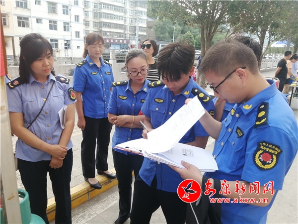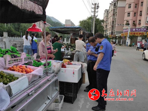 “大娘,您好!这个十字路旁不能摆摊,会影响行人通行,您可以到临时过渡市场进行售卖,我们帮您把物品搬运到临时过渡市场吧。”这是执法队员在迎宾大道柔性执法的一幕。
