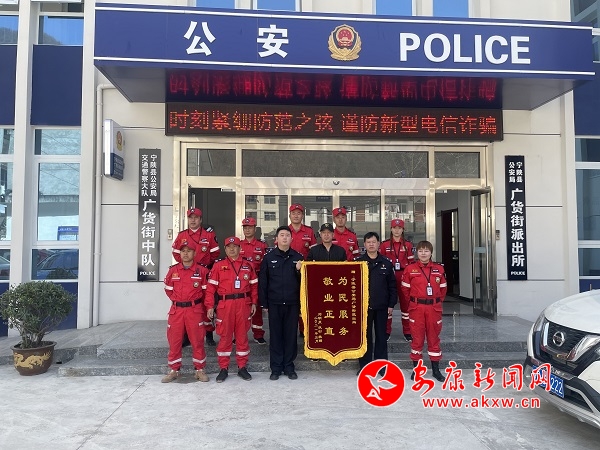 本网讯(通讯员 彭思钊 陈明安)3月23日中午,来自西安市的刘先生和权先生将一面写有“敬业正直 为民服务”的锦旗,送到宁陕县公安局广货街派出所,并激动地对民警说:“感谢你们,没有你们的紧急救援可能我在山上就下不来了。”