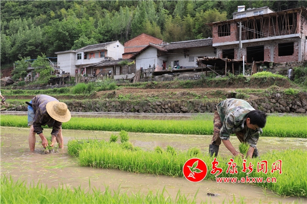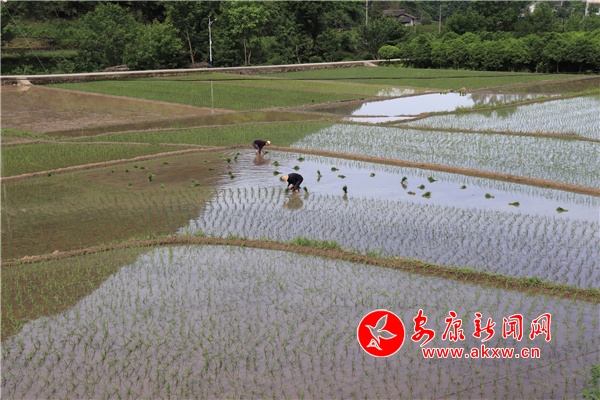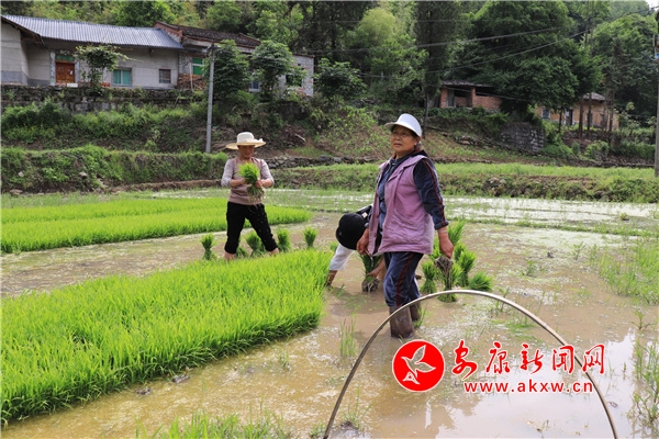 近日,正值谷雨时节,春雨绵绵,走进宁陕县龙泉村水稻种植区域,这里青山环绕,蛙声一片,村民们抢抓好时节引水耙田、移栽秧苗,在水田里来回穿梭,一株株秧苗整齐有序地插入水田里,田间地头呈现出一幅忙碌的春耕画卷。(通讯员 王辉)N7k安康新闻网