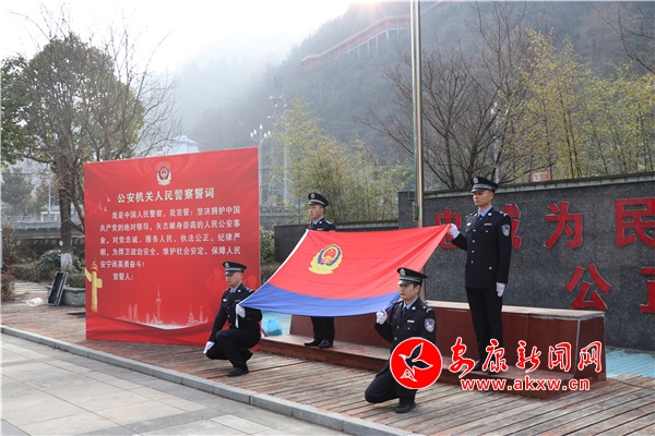 开展《公安机关人民警察誓词》集中宣誓活动。组织30余名民警,面向中国人民警察警旗庄严宣誓。“我是中国人民警察,我宣誓:坚决拥护中国共产党的绝对领导……”铿锵有力的誓言响彻全场,庄严的誓词,增强了全警在警旗引领下忠诚履职尽责的使命感和责任感。宣誓活动结束后,全体参加活动的民警,面对警旗,敬礼致敬。
