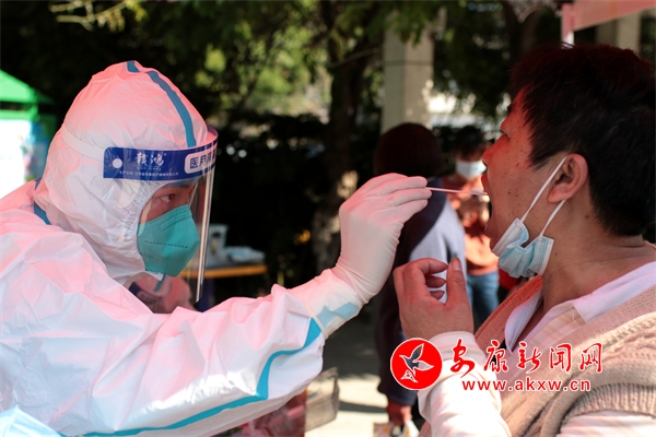 在城北社区幸福花园核酸检测采样点,核酸采样正在井然有序地进行着。医护人员全副武装,温柔轻声引导,手上动作不停,按照核酸检测采样要求,娴熟地对前来核酸检测的群众进行咽拭子采样。