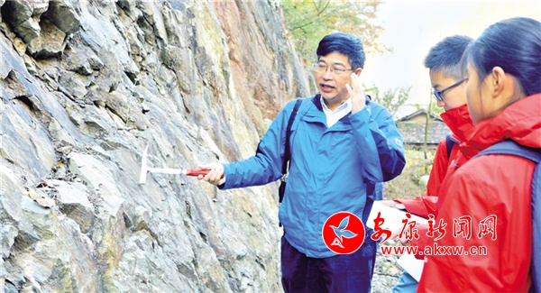 秦岭峡谷乐园负责人林晋炎正在给研学的学生讲解秦岭的地质构造