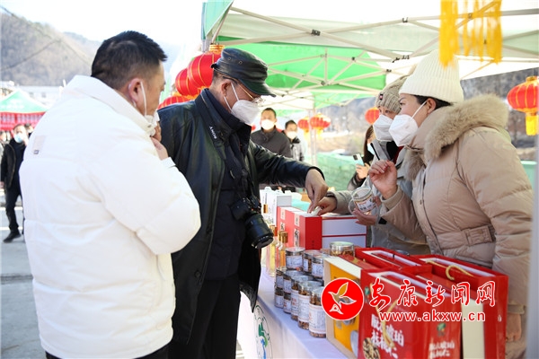 年货节现场设置了30余个展位,全县30余家农产品加工销售企业参加活动,汇聚了代表宁陕地方特色的腊肉、香菇、木耳、核桃油等100余种农副产品,充分展示了宁陕丰富的名优特产农产品资源及发展成果,为全县人民送上了本地名优农产品“年货大礼包”。除了线下采购外,现场还有主播直播带货,网友可以在抖音等平台,通过线上来采购宁陕山珍。