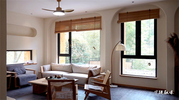 王女士入住的“望梅山居”是梅子镇依托子午梅苑景区打造的以“梅”为主题的精品民宿,规划建设8处,分两期进行。4月28日投运的是一期建设的二号、三号院落。走进梅子镇安坪村,充满设计感兼具现代风格的“望梅山居”精品民宿院落在青山绿水环绕下格外吸睛:黑瓦白墙、青砖小道,餐厅、游泳池、露营区一应俱全,改造后的老房子焕然一新,如同一幅美丽的乡村风景画,让人流连忘返。
