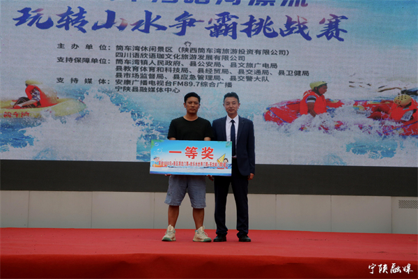 启动仪式结束后,筒车湾暗河漂流“玩转山水争霸挑战赛”开赛。来自省内的200余名选手,两人一组乘坐皮筏艇,从起点开始沿漂流河道漂至终点,用时最短者获胜。比赛中,参赛选手按时间间隔顺序出发,展开激烈角逐,最终决出一等奖一名,二等奖两名,三等奖三名。