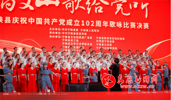 为庆祝中国共产党成立102周年,6月29日晚,宁陕县在县城体育场隆重举行“唱支山歌给党听”庆祝中国共产党成立102周年歌咏比赛决赛,用嘹亮的歌声回顾党的奋斗光辉历程,展望伟大复兴光明前景。
