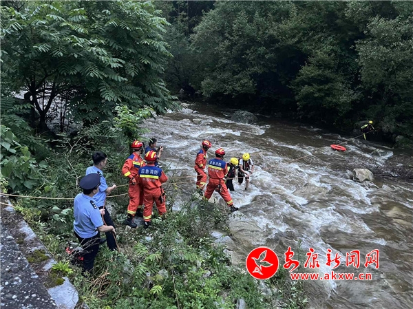 当日17时50分,宁陕县公安局城关派出所接到群众报警称,在城关镇210国道1439公里处附近有人被困在河水对岸,接到求助电话后,值班民警立即赶赴现场,与消防救援大队商讨救援方案展开救援。