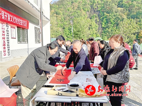 “我们村里来了文化特派员免费给我们写字,不仅可以看到优秀的作品,孩子还能跟老师学东西,希望以后他们能经常来,我们也高兴。”梅子镇安坪村村民刘红英开心地说道。