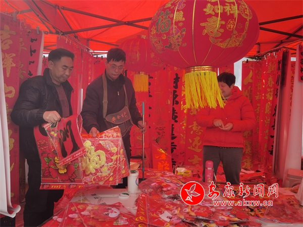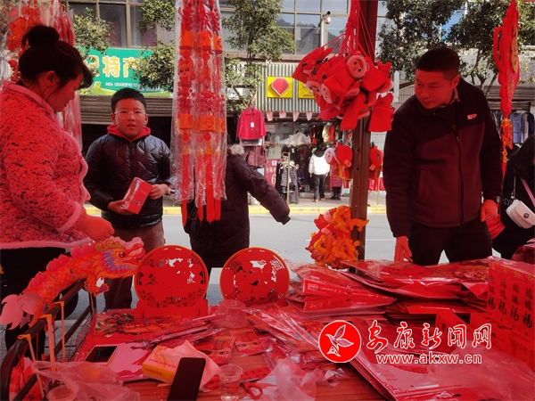 摊主刘女士说:“虽然今年过年时间比较晚,但是我们的年货已经早早备齐了,最近大家买对联的热情高涨,在新的一年祝愿大家龙年行大运、发大财,龙年吉祥。”