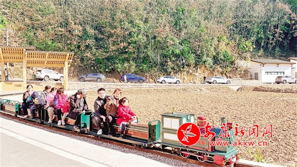 景区里,网红小火车受到游客们的欢迎,大家纷纷坐上小火车,不紧不慢地穿梭在田野中,感受大自然的惬意和美好。