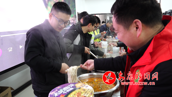 在城关镇朱家嘴收费站,收费站秒变“爱心驿站”,当地干部以及志愿者将滞留司乘人员引导至收费所进行取暖休息,向滞留司乘人员耐心解释交通管制原因,安抚司乘情绪,并送去热水、方便面、火腿肠等方便食物,暖心提供休息、充电等延伸服务。