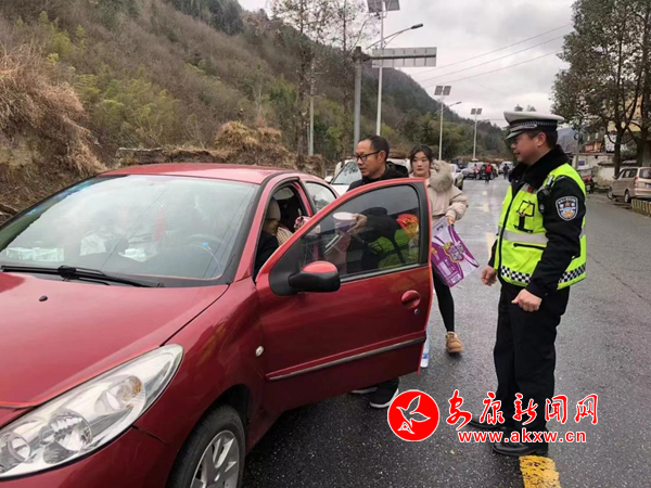 筒车湾镇立即启动应急方案,全体人员立即上岗,详细为司乘人员做好解释工作,耐心为滞留旅客提供路况咨询、便民充电、开水等服务。