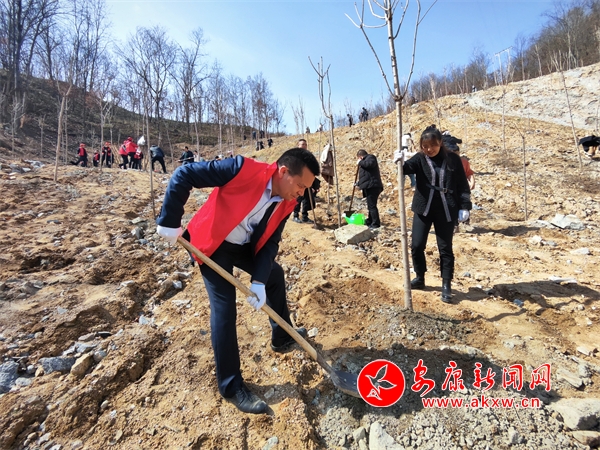 本网讯(通讯员 王辉)春回大地,万物复苏。3月12日,在宁陕县简车湾镇许家城村黄连沟的山坡上,宁陕县住建局党员干部志愿者正在开展“学雷锋·我行动·植树护绿”主题党日活动,为打造生态宁陕、提速乡村振兴挥锹添绿。