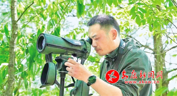 李夏正在野外观察朱鹮孵化情况 杨稳 摄Eh4安康新闻网