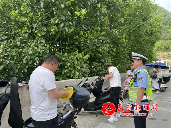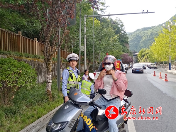 本网讯(通讯员 顾艳 冯永红)“您好同志,您的头盔呢?”“下次一定要戴好头盔再骑车”。随着夏天的到来,摩托车、电动自行车出行明显增多,为进一步巩固“一盔一带”安全守护行动成果,提升骑乘摩托车、电动自行车头盔佩戴率,提高骑乘人员守法意识、安全意识、文明意识和自我防护能力,连日来,宁陕县公安局交通管理大队持续开展未按规定佩戴安全头盔专项整治行动,全力守护人民群众生命财产安全。