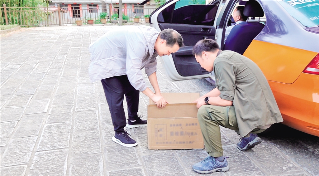 汉阴县林业局相关负责人将朱鹮送到宁陕县朱鹮野化放飞基地管理站。