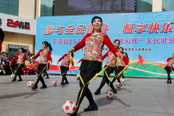 安康新闻网讯(通讯员 陈冬妮)2月19日,宁陕县2016年迎新春“体彩杯”全民健身活动在县中心广场举行,来自全县12支代表队展示了健身舞、太极拳、啦啦操、健身双……