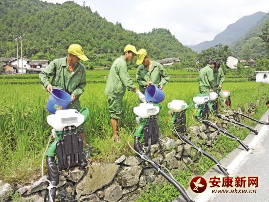 当前正是水稻稻飞虱、稻纵卷叶螟等病虫害防治的关键时期。8月10日,在宁陕县城关镇青龙村董家坝,专业化防治队员背着机动喷雾器,一字排开地进行水稻后期病虫害防……