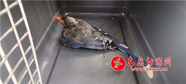宁陕公安成功救助一只国家“三有”保护动物红嘴蓝鹊