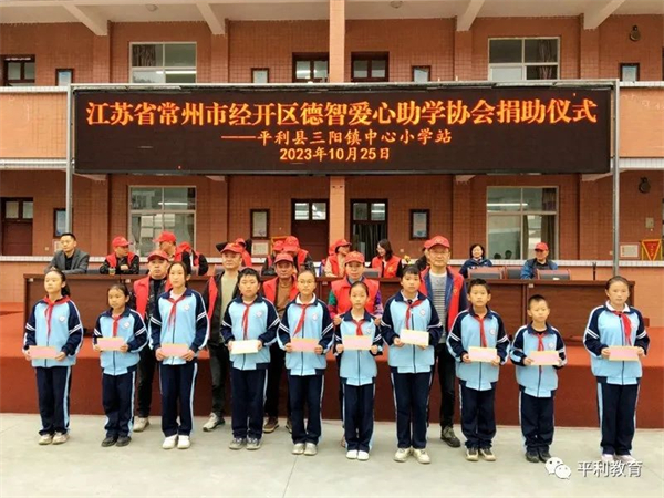 10月25日上午,常州市经开区德智爱心助学协会走进平利县三阳镇中心小学举行“一对一”捐赠仪式,为该校50名“三好学生”捐赠爱心助学金50000元,鼓励他们努力学习,祝愿他们学有所成。