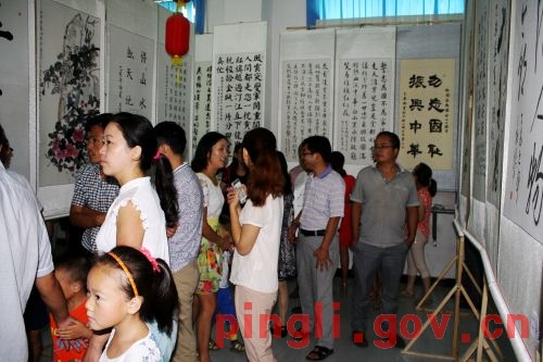 此次书画展由县委组织部、老干局主办,县老年书画学会承办,从5月5日开始征集作品到展出,历时3个多月,得到了县人大办、教体系统、政法委、旅游局、电力局、统计局、卫生局、财政局、县文联、城关镇等单位的高度重视,县书画协会、老年书画学会会员积极参与,以强烈的爱国热情和民族意识,挥毫泼墨、赋诗作画、浓墨重彩的抒发了爱我中华的浓烈情怀。共展出书画作品108幅。