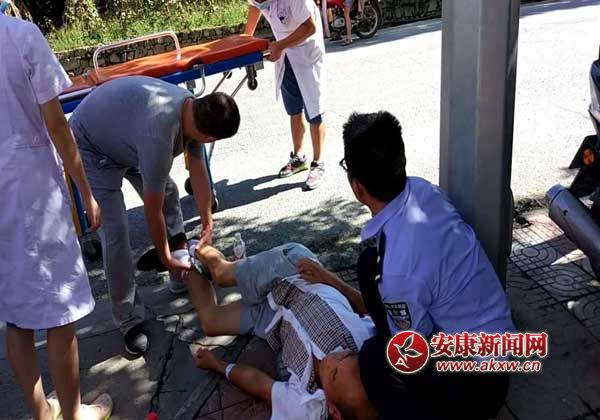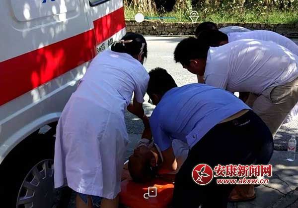这时,社区民警细心发现该男子手腕上系有平利县医院住院部手环,手环上标有姓名,科室,为避免高温对该男子产生二次伤害,社区民警立刻拨打了120急救电话,16:00时,社区民警在医护人员的指导帮助下,将该男子送上救护车并联系上该男子的家属,整个过程仅仅用了十分钟,病人便得到了及时救助,现场医务人员和群众纷纷对社区民警竖起了大拇指。