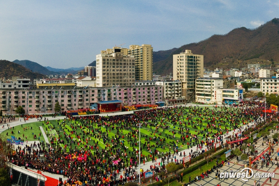 群众从四面八方涌向平利县文化广场。 柳伟 摄