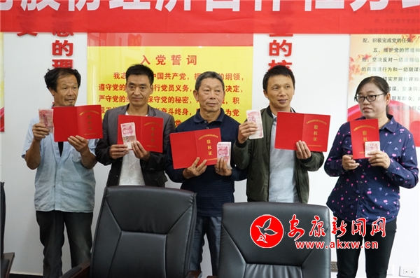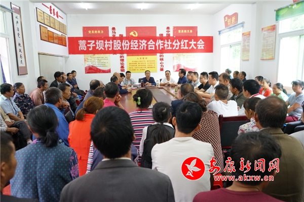安康新闻网讯(通讯员 吴明林)9月6日,三阳镇蒿子坝村举行了村集体经济组织分红仪式。在县、镇“三变”产业办及蒿子坝村工作人员的共同见证下,合作社为92户贫困户颁发了股权证书,并进行了首次分红,现场分发红利资金27600元。