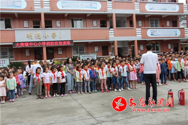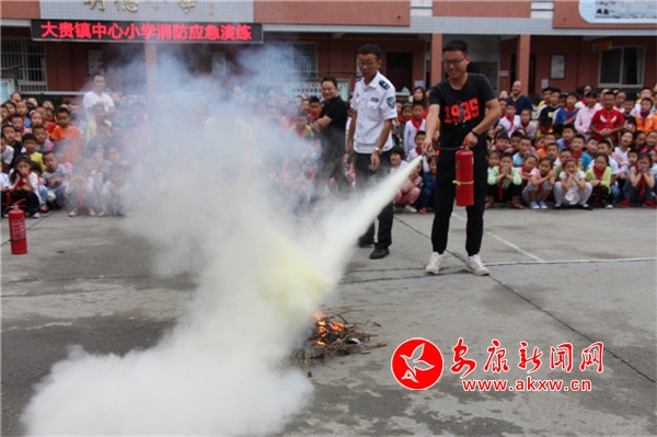 赵教官先为师生详细介绍了灭火器的用途、种类,现场用干粉灭火器按使用步骤“一查二摇三拔四喷”演示了如何正确使用灭火器。让两位老师和一名学生为全体师生进行了现场灭火演练。随后,赵教官和校领导讲解了紧急避险和应急演练有关知识及要求,组织全体师生开展疏散演练,指挥员第一声哨响各参演人员做好一切撤退疏散准备,第二声哨响即开始疏散,第一次演练2分11秒全部疏散到指定地点,第二次演练只用时1分50秒。演练结束后,赵教官为师生讲解了消防“三要、三救、三不”知识,即,“要”熟悉自己住所的环境,“要”遇事保持沉着冷静,“要”警惕烟毒的侵害;选择逃生通道自“救”, 结绳下滑“自救”,向外界求“救”;“不”乘普通电梯,“不”轻易跳楼,“不”贪恋财物。