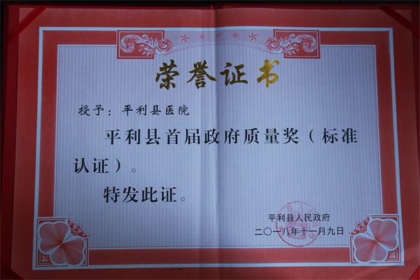 安康新闻网讯(通讯员 柯昌兰 詹涛) 2018年11月9日,在平利县人民政府召开的平利县质量大会上,平利县医院荣获平利县首届政府质量奖“标准认证奖”。